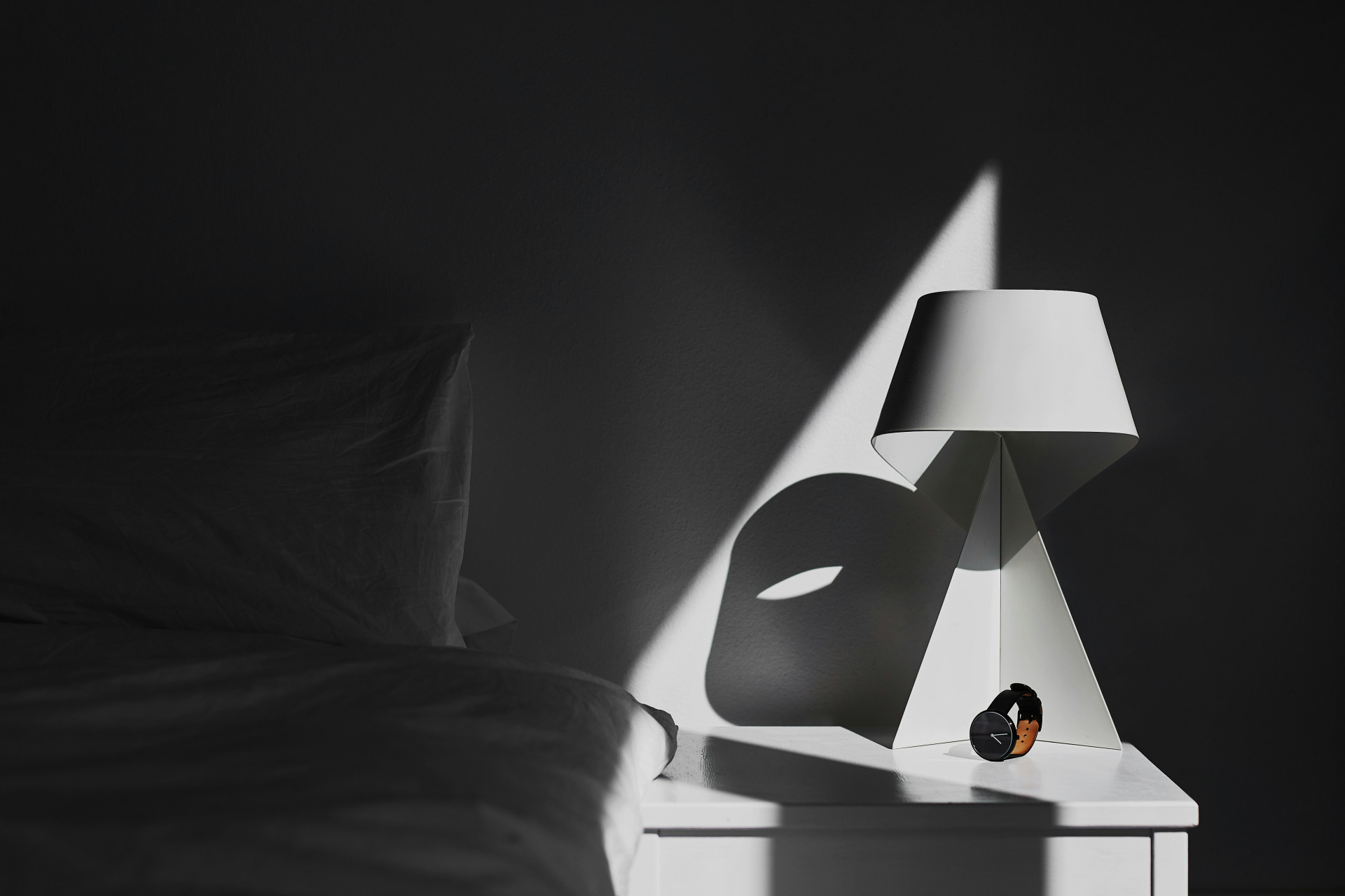 Den skulpturelle form og de afdæmpede farvetoner gør skærmen velegnet til både minimalistiske og mere kunstneriske indretninger. Den kan anvendes som pendel eller som del af en bordlampe, afhængigt af ønsket udtryk og funktion.